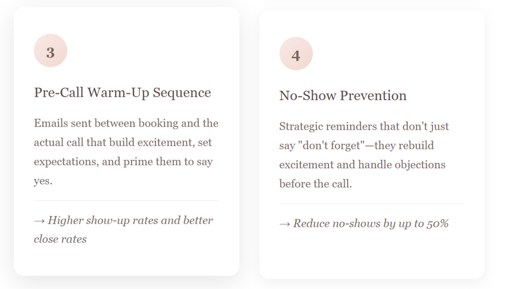 This isn't guesswork. It's a proven system that covers every single touchpoint in your customer journey from welcome sequence to conversion, so nothing falls through the cracks.