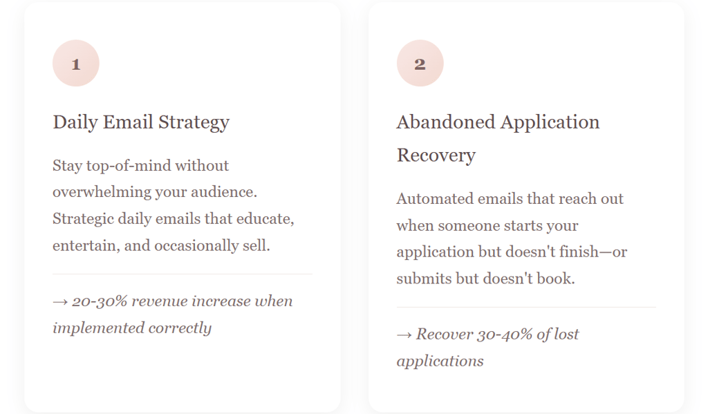 This isn't about sending more emails for the sake of it. It's about having the right emails at the right moments in your customer journey -so every subscriber has a clear path to becoming a client.